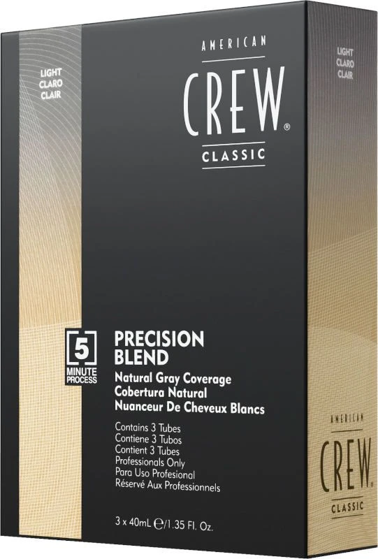 American Crew Precision Light Contains: 3 x 40ml tubes that provide natural tone on tone grey coverage and is easy to use and apply.