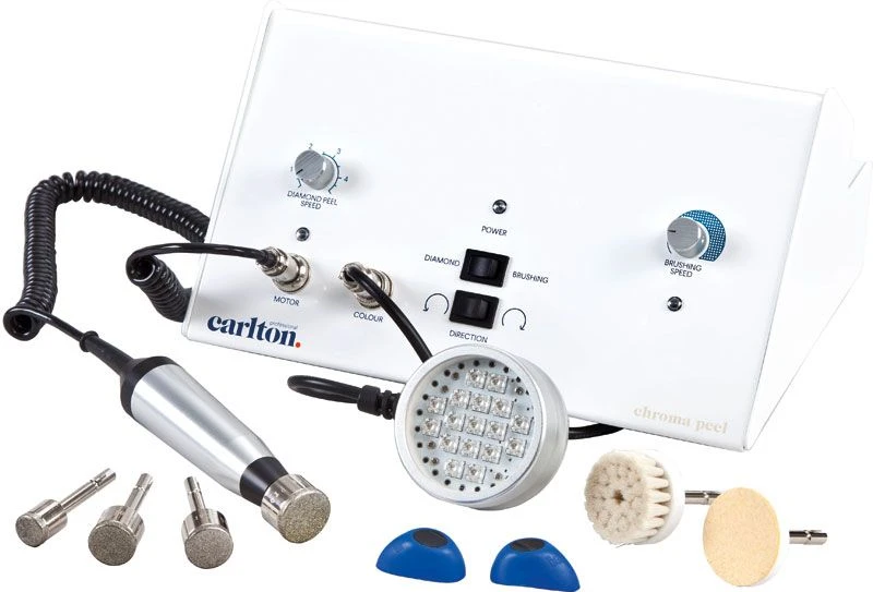 A combination unit that offers both diamond microdemabrasion and chromatherapy. The discs glide effortlessly over the skin performing a wonderful peel. There is no vacuum feature and it is easy to use, creates no mess and is low maintenance. Also gives the functions of sponge and brush cleansing, ideal for use in facials, manicures and pedicures.