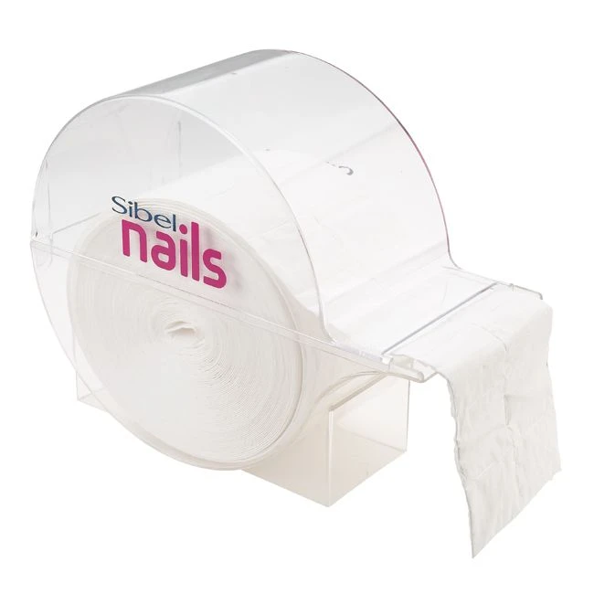 Holder for roll of cellulose square non-fluff wipes for use in removing nail polish or to clean the nails. Includes 1000 wipes on one roll.