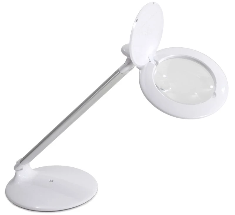 Modern and compact, all-purpose, lightweight table magnifier providing 5 diopter (2.25X) magnification with a 12 diopter (4.0X) inset lens. Taking up a small place on your table but powerful enough for working on projects that need close to details. Slim, compact design. The daylight LEDs provide high contrast and accurate colour matching. It is also foldable so it is ideal for mobile therapists and for use during nail art.