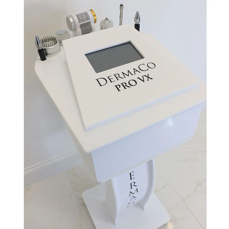 DermaCo Pro VX can be used for all the following treatments: Diamond Microdermabrasion, Ultrasound (Body and Face) LED Light Therapy, Micro-Current, Thermotherapy and Cryotherapy.