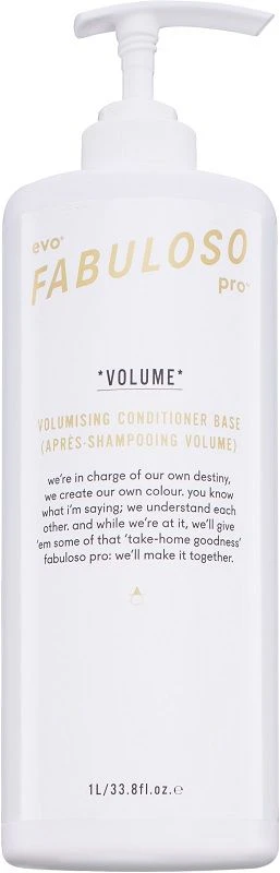 Evo Fabuloso Pro Volume Conditioner is a volumising conditioner base in a back wash, professional size.