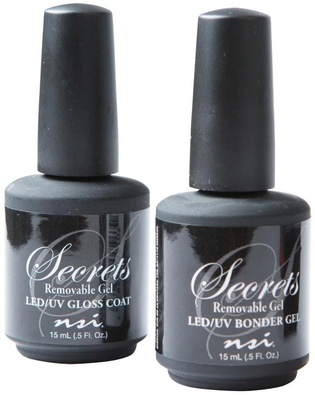 NSI Secrets Soak Off Gels can be removed with acetone, or a like substance. They have the same qualities of traditional gels but can be soaked off instead of filed off. There is no dust and less manual effort for removal.