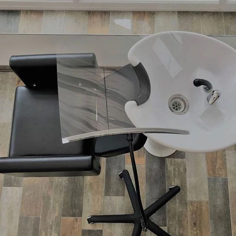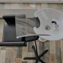 A floor standing portable protection screen on a castor base perfect for use in any hair or beauty salon.